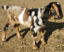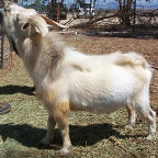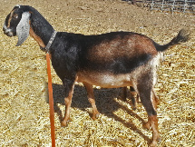 Struedel | ![]() | Mini Nubian Very nice light buckskin coloring with very long ears and gentle disposition. | F5 5th generation mini-nubian Registered: IDGA Born: 07-06-14 Sire: F4 Cornerstone Farm Kaleidescope Dam: F4 Vista Robles Apple Pie Color: Light buckskin with white. Price: Retained | ![]() ![]() |