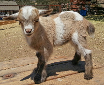 Major | ![]() | Nigerian Dwarf This handsome fella is already chasing the girls around the nursery. Very solidly built, he has the most energy in the barnyard. | Purebred Nigerian Dwarf Registered: Born:5-26-2014 Sire: AGS DoubleJoy Ranch Roger Taylor Dam: Cottonwood Croft MBE Jessie Color: Chocolate chamoisee with white markings, blue eyes Price: SOLD | ![]() ![]() |