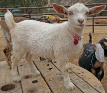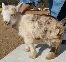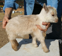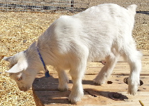 Princess Buttercup | ![]() | Nigerian Dwarf A single birth, she is very strong and well-built. Beautiful blue eyes and an almost white coat. | Purebred Nigerian Dwarf Registered: Born:05-26-2014 Sire: AGS DoubleJoy Ranch Roger Taylor Dam: Aura PS Gold Passion Color: White with gold undertones, blue eyes Price: Retained | ![]() ![]() |