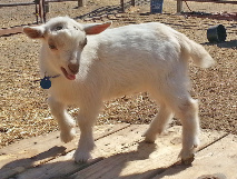 Vicarious Ranch Finally | ![]() | Nigerian Dwarf | Purebred Nigerian Dwarf Registered: Born: 06/19/15 Sire: AGS DoubleJoy Ranch Roger Taylor Dam: Cottonwood Croft MBE Jessie Color: White with gold undertones, blue eyes | ![]() ![]() |
