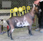 We haven't gotten into showing our goats but here is a link to Klyde's full brother, F5 Cornerstone Farms Moon Light, who won Grand Champion Senior Buck WCC MDGA Show 2013 and other awards. | ||||