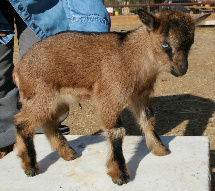 F2 male | ![]() | Nigerian Dwarf | Purebred Nigerian Dwarf Registered: MDGA/IDGR Bred: 12-27-15 Born: 5-18-15 Sire: AGS DoubleJoy Ranch Roger Taylor Dam: Cottonwood Croft Mattie Color: Brown/Black/White with blue eyes Price: $350 buck $100 wether | ![]() ![]() |