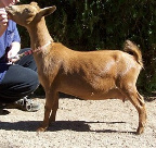 Ginger | ![]() | Mini Nubian Looks just like her mom, without the white saddle. Nice long legs. | F5 5th generation mini-nubian Registered: IDGA Born: 07-06-14 Sire: F4 Cornerstone Farm Kaleidescope Dam: F4 Vista Robles Betsy Ross Color: Red buckskin with white. Price: Retained | ![]() ![]() |