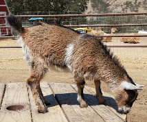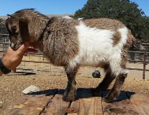 AGS DoubleJoy Ranch Roger Taylor D-1619247 | ![]() | Nigerian Dwarf "Stinky Roger" is our patriarch Nigerian Dwarf Herd Buck and sire to all of the 2014 ND kids. He has thrown more girls than boys and 67 percent blue-eyed kids. | Purebred Nigerian Dwarf Registered: ADGA Born: 8/13/2012 Sire: AGS VVR Rama D-1495786 Dam: The Soft Serve Vanilla D-1553265 Color: Chocolate chamoisee with white markings, blue eyes | coming soon |