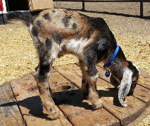 Buster | ![]() | Mini Nubian Buster broke his lower left leg at 2 days of age but was splinted and casted by the vet and should be fine. | F5 5th generation mini-nubian Registered: IDGA Born: 6-25-2014 Sire: F6 Cornerstone Farms Kaleidescope Dam: F5 Jardine Meadows Foxy Lady Color: Mahogany buckskin w/white saddle, frosted ears Price: Wether: $150 | ![]() ![]() |