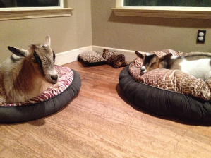 Wanted to let you know that Winston "Major" is doing well. He's growing like weeds and has gained half his bodyweight since we picked him up at Vicarious Ranch. He and Billy are becoming friends and spending their days together. Thank you so much for everything I really, really think you both do an incredible job there at the ranch. Thank you for being such amazing people! The care, love and quality you put into all of your animals reflects on their health and good nature…We love our little Winston who is a confident, happy and healthy goat…Jamie and Ellie." | ![]() |
