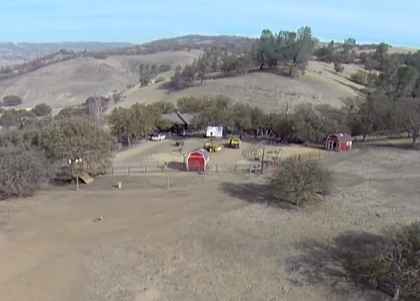 The ranch is geographically divided into upper and lower parts. Located on the blue oak covered upper ranch are the ranch house, nursery, chicken coop, breeder hog pens, buck pens, gardens and orchard. Other features of the upper ranch include a commercial wood fired pizza oven, greenhouse, outdoor movie theater and lounge deck with pallet bar.